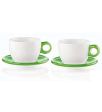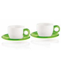 Set of 2 breakfast cups with saucers